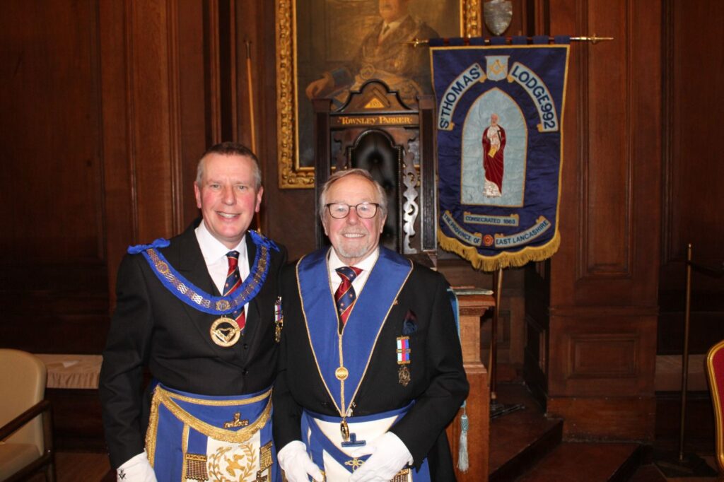 The Worshipful Master presented the Deputy Provincial Grand Master in charge with a cheque in aid of the East Lancashire 2026 Festival Appeal before he retired from the Lodge accompanied by the Provincial Delegation and the celebrant.