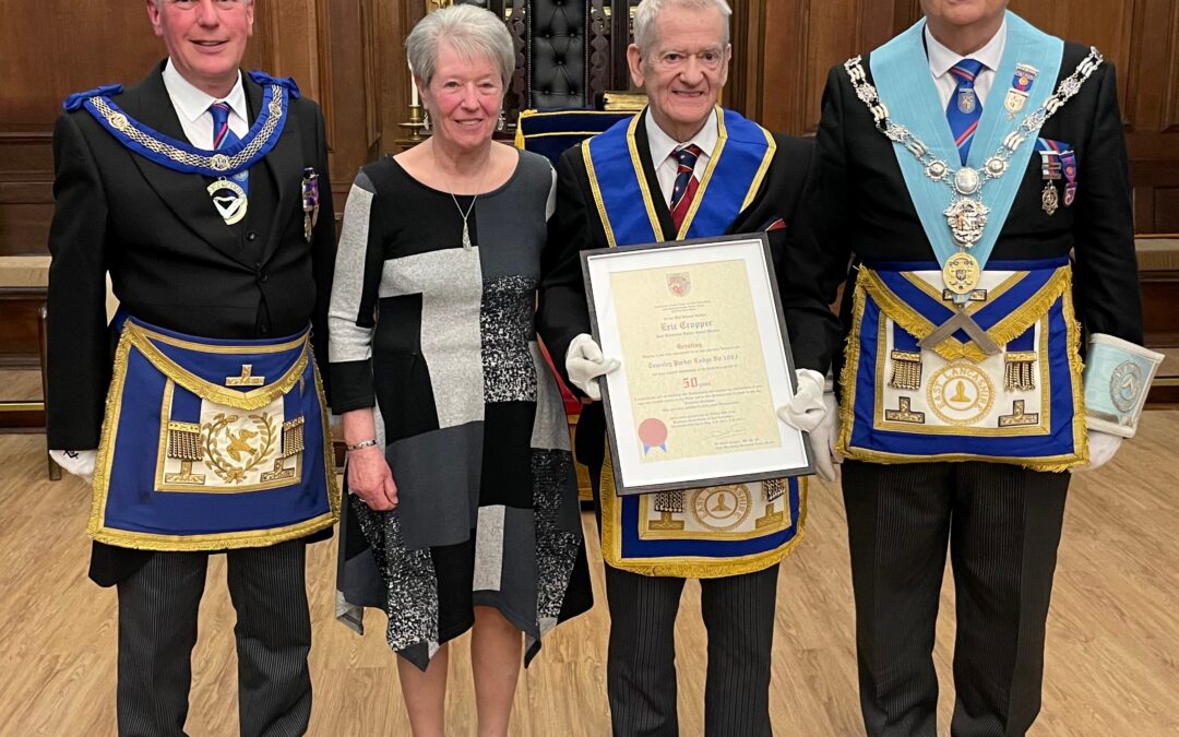 On Thursday 21 April 2022, Townley Parker Lodge No 1083 marked the celebration of 50 years in Freemasonry for its longest-serving member, WBro Eric Cropper.