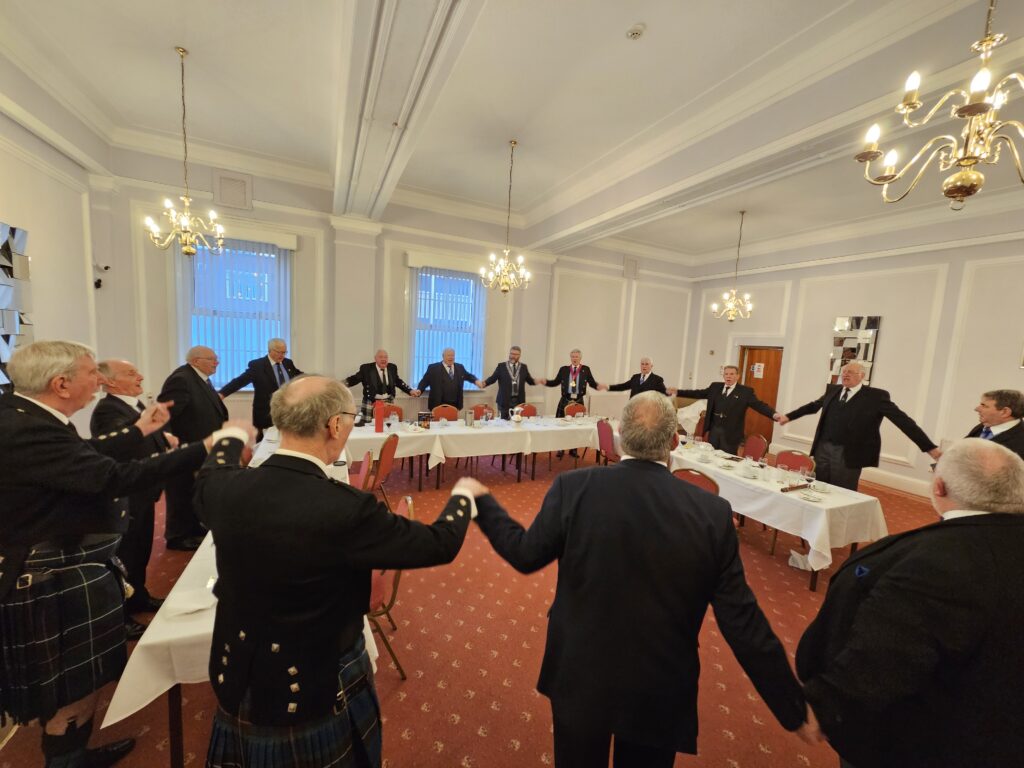 The Lodge closed, and afterwards, there was an excellent social board that saw the usual toasts and was a lively event finished with all the brethren upstanding singing Auld Lang Syne.