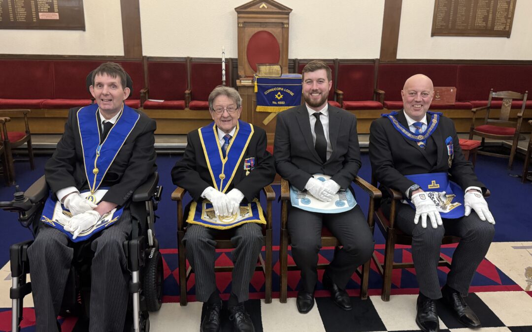 William James Bell was raised to the Third Degree in Cornucopia Lodge 4553, marking a significant milestone in his Masonic journey. While the lodge traditionally meets in Manchester, this ceremony was held in Warrington for a very special reason. William’s father, Michael Bell, who has multiple sclerosis and is confined to a wheelchair, would have found it difficult to travel. In a true demonstration of Masonic care and unity, the lodge brought the ceremony to him.